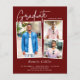 Papier Maroon Red White 3 Photo Graduation Invitation