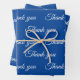 Papier d'emballage cadeau "Merci" avec ce design bleu et blanc unique.