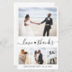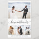 Budget "Amour et Merci" Script Lettré à la main Coeur élégant, minimaliste Mariage Photo Collage Carte de remerciements en noir blanc. Modèle simple mignon carte mariage avec quatre (4) photo sur le devant et une photo sur le côté arrière. Avec le texte "Amour et merci" dans une jolie main lettré en texte de typographie de queue de swash police. Ajoutez votre nom et un message de remerciement.