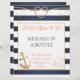 Message de Fête des mariées nautique dans un panneau de bouteille est conçu avec un coeur de corde, une fleur, parties scintillant dorée, et une ancre.
