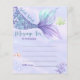 Invitation d'anniversaire thématique "Under the Sea". Aquarelle aux teintes violettes et bleues pastel, avec la queue joueuse de sirène, le poisson clown et les coraux.