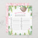 Mignonne maman et bébé paresseux accroché à une vigne vert vif dans la jungle - jeu de baby shower parfait pour le paresseux, l'aventure, la jungle, le safari ou le baby shower à thème animal. Nommez le bébé animal est plus dur qu'il n'y paraît - chaque invité essaie de nommer ce que l'animal bébé est appelé. Celui qui a les réponses les plus correctes gagne.