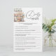 Ajoutez du rire à votre douche nuptiale avec ce jeu "Off the Market" Dirty Minds. Un petit tour qui défie les invités, brise la glace et rend la célébration de la future mariée encore plus mémorable. Clé de réponse : 1. Glove, 2. Zipper, 3. Livre, 4. Puzzle, 5. Popcorn, 6. Bougie, 7. Massage, 8. Crème, 9. Ballons, 10. Piscine/Billard, 11 ans. Du dentifrice, 12 ans. Ampoule