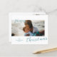 Carte de Noël moderne avec un design simple et minimal avec "Joyeux Noël" dans une amusante typographie en écriture bleu aqua qui chevauche légèrement votre photo de paysage préférée. Le dos contient deux images supplémentaires ainsi que votre message personnalisé.