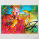Coloré, fantaisiste et vibrant caractère de mascarade vénitienne. Belle femme blonde sophistiquée est assise avec une rose rouge et un masque à plumes à la main avec des tissus fuchsia or brillant d'un costume de boule masqué baroque avec des plumes et un chien. Aquarelle avec des couleurs vives en, bleu jaune rose, vert, or étincelant et argent feuille, inspiré des personnages de Comédie d'Art ( Commedia dell'Arte ) , Carnaval de Venise et masques de plumes vénitienne.Ce design cool et artistique est aussi un cadeau magnifique pour les occasions spéciales, anniversaires, fêtes, Saint Valentin, Mardi Gras ( Mardi gras ) saison.