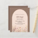 Une élégante invitation fleur sauvage. Mocha, arrière - plan marron muet et arche beige. Décoré de fleurs sauvages couleur eau dans le beige, rose. 1 feuille = 1 invite imprimé bord à bord.