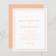 Élégant et tendance, le faire-part de mariage économique présente un design minimaliste contemporain simple, avec une bordure à double cadre couleur pêche sur un arrière - plan blanc immaculé. Le libellé traditionnel apporte une sophistication intemporelle et moderne. Personnalisez le design mariage avec vos détails en écriture et script chic. Le dos de la carte correspond à la pêche solide.