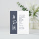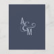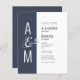 Faire-part de mariage budgétaire. Conception mariage moderne simple et géométrique. Bleu foncé gris et blanc. Typographie audacieuse et élégante. Les monogrammes de Mariée et de Groom et une grande esperluette en tant que symbole d’unité.