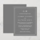 Faire-part de mariage économique simple avec un design moderne et élégant avec votre monogramme à deux lettres en haut et vos détails entourés d'une fine bordure. Tout le texte est en blanc sur un arrière - plan gris moyen. Les polices et les couleurs arrière - plans peuvent être changées en n'importe quelle couleur en cliquant sur le bouton "personnaliser". Ces invitations de mariage bon marché sont parfaites pour un couple minimaliste.