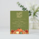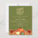Un arrière - plan vert mousse. Décoré de fleurs citrouilles et orange et jaune. Personnalisez et ajoutez les détails de la fête. Texte : Grateful and Blessed. 1 feuille = 1 invite imprimé bord à bord.