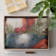 A sweet watercolor style illustration of Mr and Mrs Claus on a tissue paper framed by pine cones, pine branches and illuminated Christmas lights.