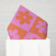 C'est mignon fleurs rétro super déformées sur motif rose et orange à damiers carré