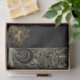 Elégante conception de papier tissulaire avec des doodles dessinés à la main en or sur un arrière - plan noir.