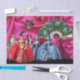 Expressive, fantaisie élégante marionnettes vénitiennes anciennes de! 700, costumes rouges et éclatants, coloré, masques vénitiens artistiques avec plumes paon et scintillants d'imaginaire bleu violet doré, Collage numérique original et design graphique de Bulgan Lumini - Baldesign3d (c)