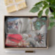 Expressive, fantaisie élégante marionnettes vénitiennes anciennes de! 700, costumes rouges et éclatants, coloré, masques vénitiens artistiques avec plumes paon et scintillants d'imaginaire bleu violet doré, Collage numérique original et design graphique de Bulgan Lumini - Baldesign3d (c)
