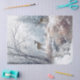 Papier Mousseline Aquarelle Bois Cerf d'hiver