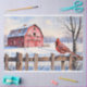 Papier Mousseline Aquarelle Grange rouge et découpage hivernal cardi
