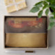 Arbre de Noël doré brillant avec lanternes, poussière d'or et arcs. Modèle papier de tissu personnalisable