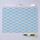 De mignons nuages de pluie, des arcs-en-ciel et de la pluie tombent sur un arrière - plan bleu. Parfait pour un baby shower, pâques ou un anniversaire de printemps.