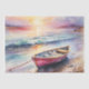 Naviguez à travers une mer aquarelle, où le ciel rencontre l'horizon dans des teintes douces du coucher du soleil. Un bateau à rames repose tranquillement sur le rivage, baigné dans la lueur de la décoloration, prêt à porter des rêves sur des terres lointaines. Parfait pour votre prochain projet de découpage, ce papier de tissu capture la magie paisible d'une soirée côtière, prête à inspirer votre créativité.
