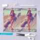 Modèle de fille de plage de Bikini debout au bord de l'eau avec une queue de cheval pour customiser avec votre propre salutation, nom, message, etc
