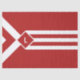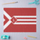 Un élégant motif géométrique présente des rayures blanches sur un arrière - plan rouge. Trois chevrons blancs et rouges alternent se terminent par un diamant rouge surligné de blanc. On dirait une médaille stylisée suspendue à un ruban. Le diamant contient un monogramme personnalisable. Trois bandes blanches s'étendent du côté opposé du diamant jusqu'au bord du dessin. Les tiers extérieurs du motif sont rouges. numériquement créé une image. Copyright © Claire E. Skinner. Tous droits réservés.