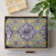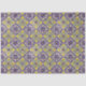 Papier Mousseline Bleu Méditerranée Motif Fleurs Jaunes