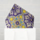 Carrelage traditionnel bleu et jaune peint à la main de la Méditerranée. Motif de perfection. OEuvre d'azulejo en tuiles de fleurs bleues et jaunes. Le design décoratif parfait, cadeau idéal pour toute occasion. Un beau design méditerranéen d'été représentant des fleurs jaunes avec leur verdure et fleurit contre un motif vintage bleu et blanc.