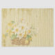 Ce design présente un arrière - plan en bois clair jaune et rustique avec une corbeille de fleurs blanches et jaunes. Parfait pour l'art de la découpage, l'artisanat du papier ou l'emballage de cadeaux. Assurez-vous de retirer le sac cadeau correspondant!