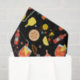 motif cool avec boulettes et boissons, deux choses favorites pour faire cet été. Éléments orange et jaune sur arrière - plan noir.