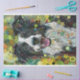 "Psychedelic Collie Dreams" pour le nom de cette Bordure Collie capture l'essence de la pièce avec un clin d'oeil à sa qualité vive et onirique. Ce mélange créatif de styles donne lieu à une pièce qui attire l’oeil et qui exprime la nature énergique de la Bordure Collie. La toile de fond présente des bulles rondes et des motifs complexes, ajoutant une touche psychédélique et abstraite à la composition.