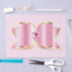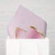 Papier de tissus avec un arc brillant avec contour doré et une pierre à gemme rose à facettes au centre. Style luxe féminin glam style.