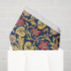 Ce dessin présente un motif de tissu créé par l'artiste britannique William Morris (1834-1896), fondateur du mouvement Arts and Crafts. Il montre du feuillage vert sur un arrière - plan bleu avec des touches de couleur rouge et rose. On y trouve des fleurs de tournesol, de violet et de columbine. Le motif original a été conçu pour la première fois en 1883.