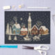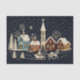 Papier Mousseline Broderie Noël Snowy Village Scène Bleu