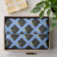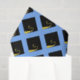 Cadeau de graduation créatif et tissu de décoration de fête de grad avec motif de bonnet de graduation noir et or sur arrière - plan bleu clair.