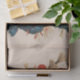 Casques de tournoi baroque élégants et bizarres avec de magnifiques dragons rouges, aigles et plumes rouges bleues avec de vieux effets de parchemin brun et grunge.