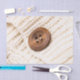Dispose d'un pull cardigan tricoté crème avec bouton en bois. Un doux papier de tissu pour envelopper votre cadeau.