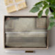 Une image d'un chaton félin charmant mais perplexe, stylisé à la manière de Pacheco avec des traits anthropomorphiques, élégamment habillé. Le chat est assis sur un petit canapé, apparemment dans une salle d'attente. L'oeuvre rappelle l'art moderne, mettant l'accent sur les tons marron et artisanal à l'aide de papier découpage