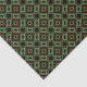 Ce papier de tissu de Noël présente un motif de formes rubans entrelacées inspirées de l'art du noeud celtique, ainsi que des couronnes de feuilles saints et de baies, le tout dans des couleurs de vacances traditionnelles de rouge et vert avec des accents jaunes dorés.