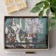 Papier de tissus de Pieter Bruegel, la peinture huile sur bois de l’Ancien Les chasseurs dans la neige (1565). Un village drapé de neige accueille un groupe de chasseurs et de chiens. Les villageois patinent sur les lacs glacés. Un joyeux cadeau de Noël !