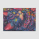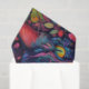 Illustration colorée d'un chat aux couleurs vives et en motif. Idéal pour l'emballage cadeau ou le découpage et les projets artisanaux.