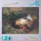 Ce dessin présente une peinture de l'artiste franco-belge Henriëtte Ronner-Knip (1821-1909), plus connue pour son art animal. Le tableau montre cinq chats et chatons reposant ensemble sur une couverture dans un petit abri en bois. Il y a du lierre qui pousse autour de l'abri, ainsi que d'autres plantes et fleurs. Les chats ont une fourrure de couleur différente : l'une est du gingembre, l'autre est blanche, deux sont gris et l'autre a une fourrure noire. Les chatons sont très mignons et adorables. L'oeuvre originale a été peinte en 1844.