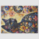Papier Mousseline Chat noir Kitty Floral Whimsical Jaune Découpage