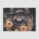 Tissu papier avec une jolie illustration. Un chat noir aux cheveux longs portant un casquette de sorcière noire. C'est des oreilles qui s'arrachent. Entouré de fleurs d'automne orange et marron. Parfait pour les amoureux de les chats.