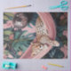 L'image montre un guépard reposant dans un hamac rose sur fond de grands feuilles tropicaux et de fleurs roses. Une boule disco est suspendue au plafond sur le côté droit de l'image. Le lieu est intéressant en raison de la juxtaposition de l'animal sauvage dans un cadre décontracté, presque domestique, et des éléments de décoration éclectiques et dynamiques. Cheetah reposant dans hamac, hamac rose, arrière - plan feuille tropical, fleurs roses, boule disco, animal sauvage dans le cadre domestique, décor vibrant, scène éclectique, image d'animal artistique, photo guépard unique.