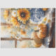 Papier Mousseline Chute Citrouille Tournesol Floral Bleu Blanc Décou