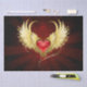 Coeur rouge vif d'un ange aux ailes dorées brillant dans l'arrière - plan rouge foncé et rayonnant décoré d'un motif.