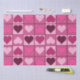 Un motif basé sur les coeurs graphiques simples horizontalement et verticalement divisé par les discriminations raciales de solide. Chaque coeur seule carré. Tous les coeurs, les milieux carrés et les lignes varient en couleurs enjambant de rose-clair au burgund. Doux et romantique, approprié sur des Valentines ou pour montrer juste du romance à tout moment ! Il y a également une version avec des coeurs beaucoup plus petits.