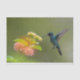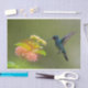Une belle photo d'un colibri qui se nourrit de fleurs jaunes et roses est présentée sur papier de tissu. Une belle façon d'envelopper des bijoux, des petits cadeaux ou des trucs avec un sac cadeau!