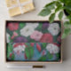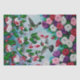 Des colibris à queue large volent, buvant du nectar des fleurs dans un jardin de printemps rempli de fuchsias et de pétunias.